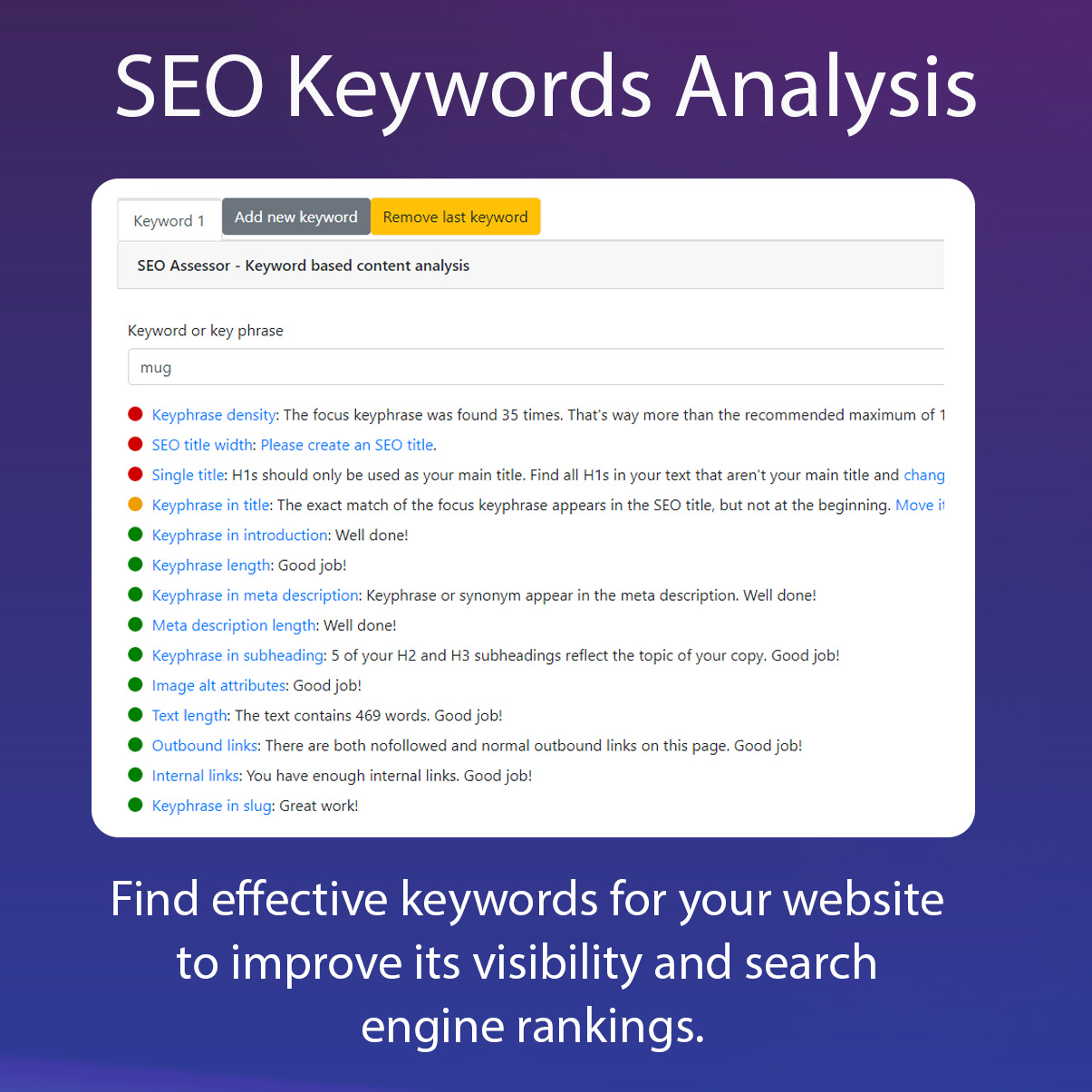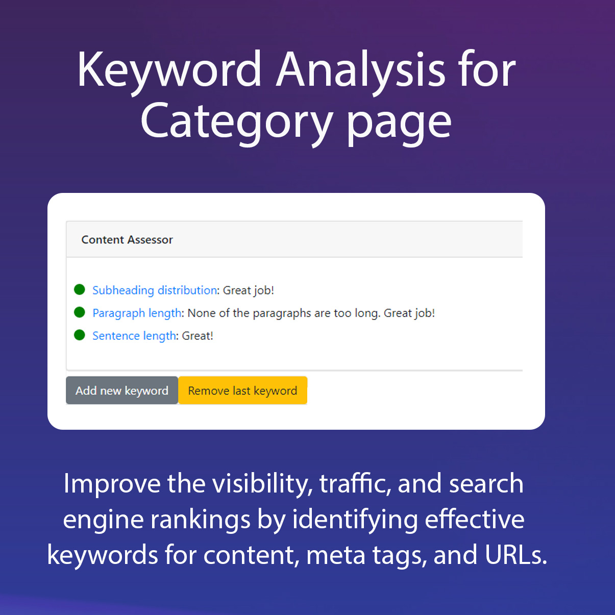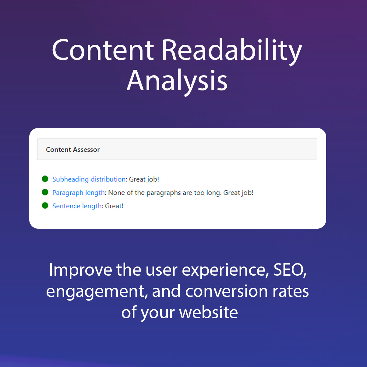 Modulul nostru asigură că website-ul tău respectă cele mai înalte standarde de SEO tehnic și îți oferă instrumente pentru optimizarea conținutului, atât pentru SEO, cât și pentru lizibilitate. Cu suport pentru 19 limbi, este soluția ideală pentru afaceri din întreaga lume.