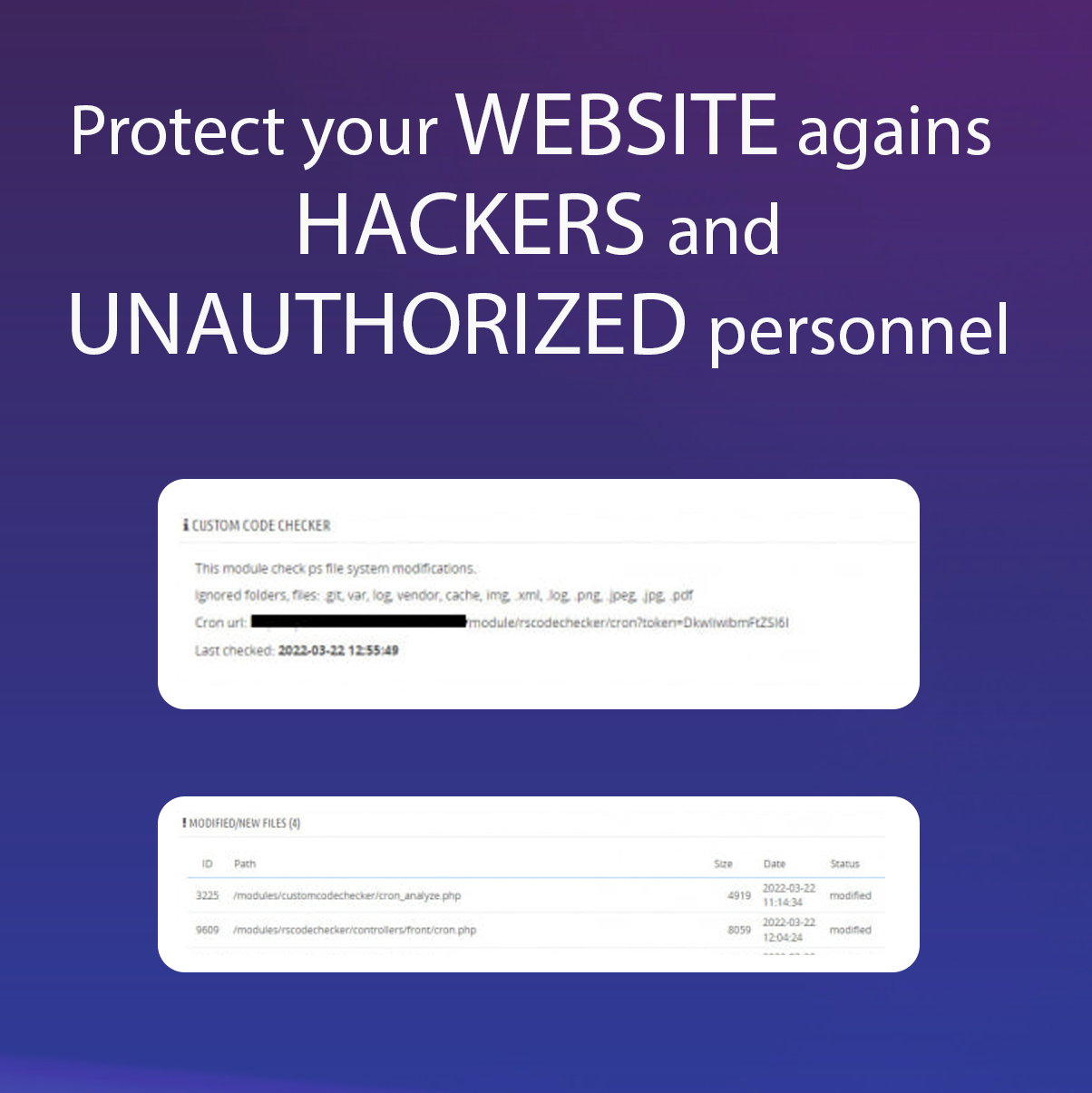 Acest modul este un instrument excelent pentru a-ți proteja website-ul împotriva hackerilor și a persoanelor neautorizate. Vei putea vedea fiecare fișier modificat cu ajutorul modulului nostru și vei detecta orice modificare realizată fără consimțământul tău.